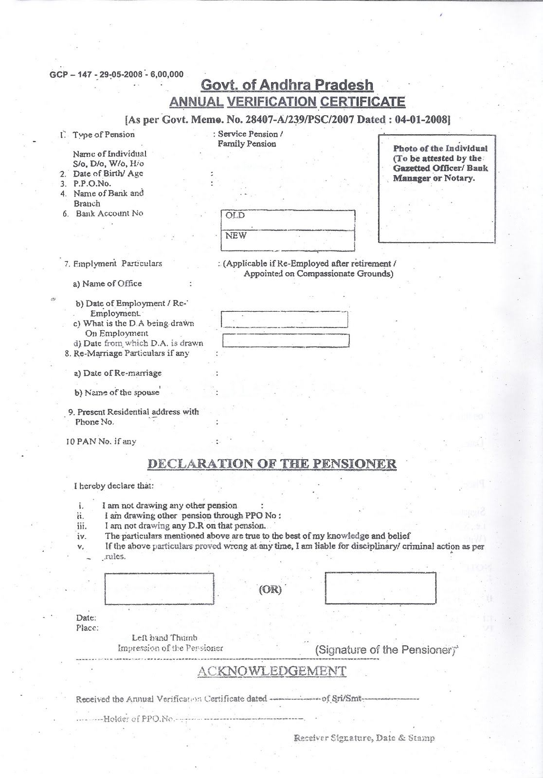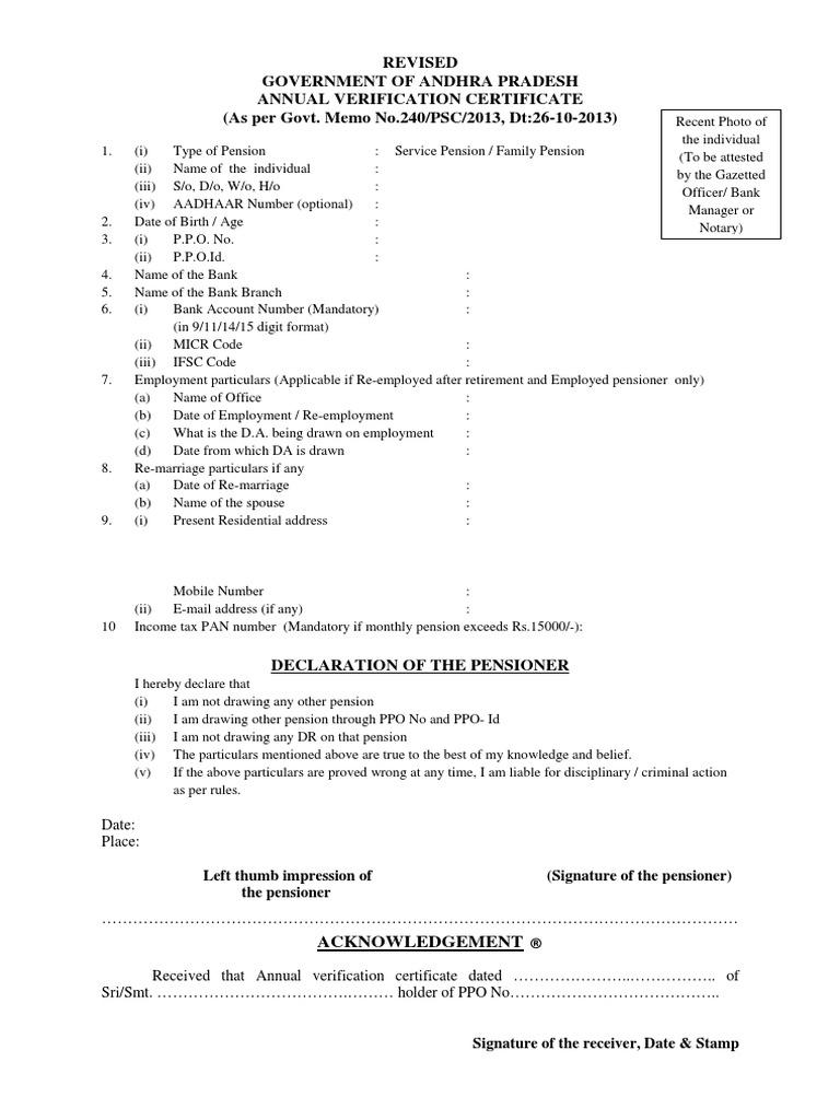 Annual Verification Certificate for AP Pensioners AP EMPLOYEES