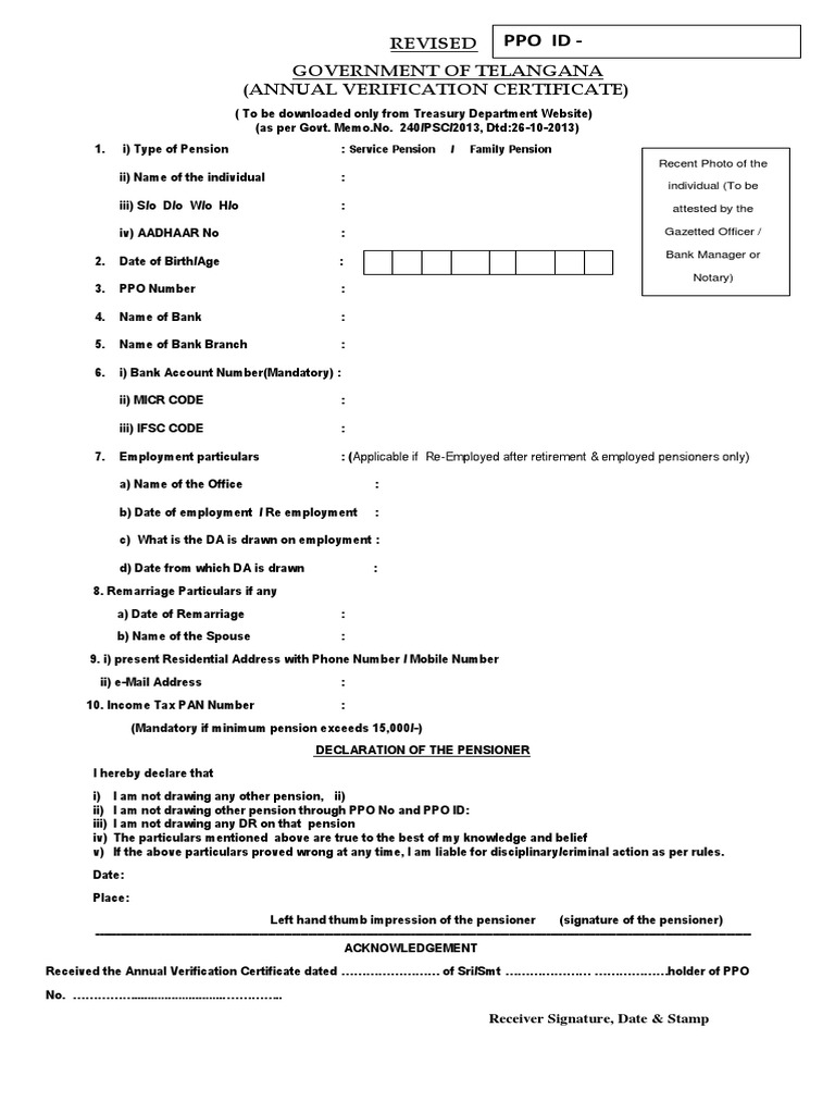 Ppo Id : Revised Government of Telangana (Annual Verification
