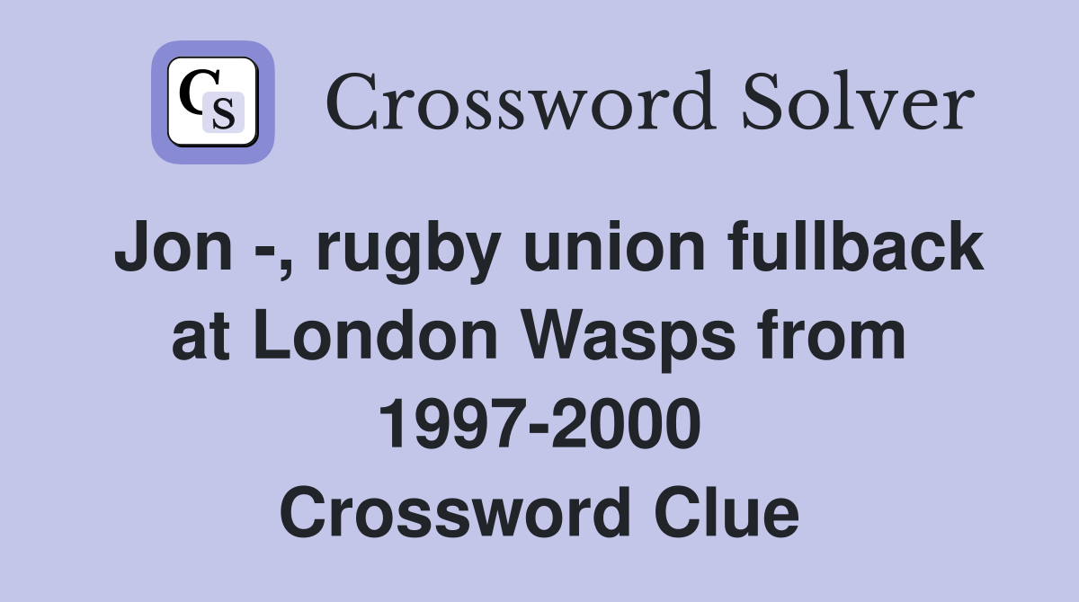 Jon rugby union fullback at London Wasps from 1997 2000 Crossword