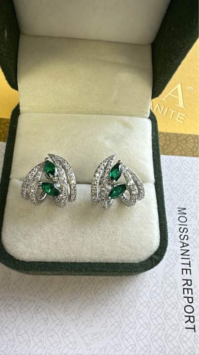 Beautiful Emerald Moissanite Diamond stud earrings with GRA Certificate