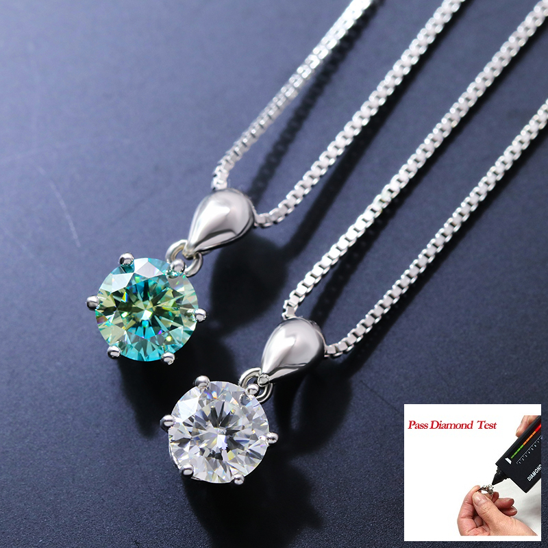2ct Real Moissanite Women Diamond Necklace Classic 6 Claw Necklace with