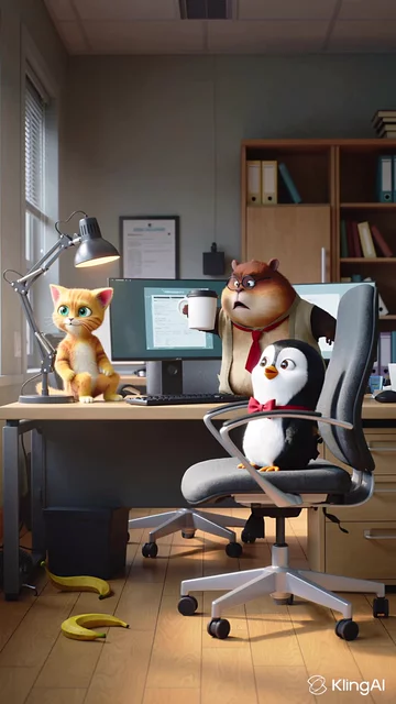 Absurd Funny Office Chaos Ultra realistic Animals Cinematic Lighting
