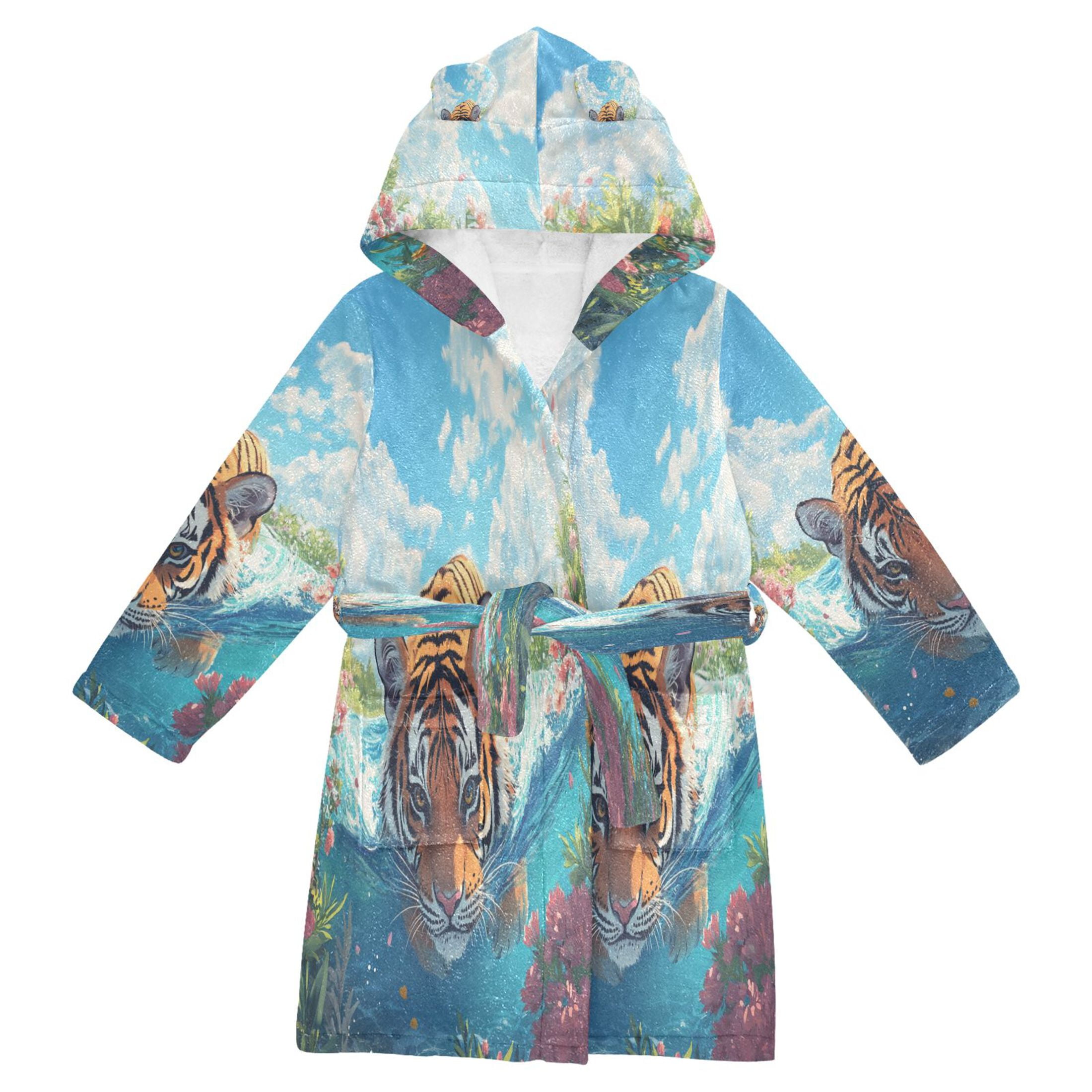 BZSMCE Bathrobes Belt Hooded Tiger s Graceful Pursuit Creative Pattern