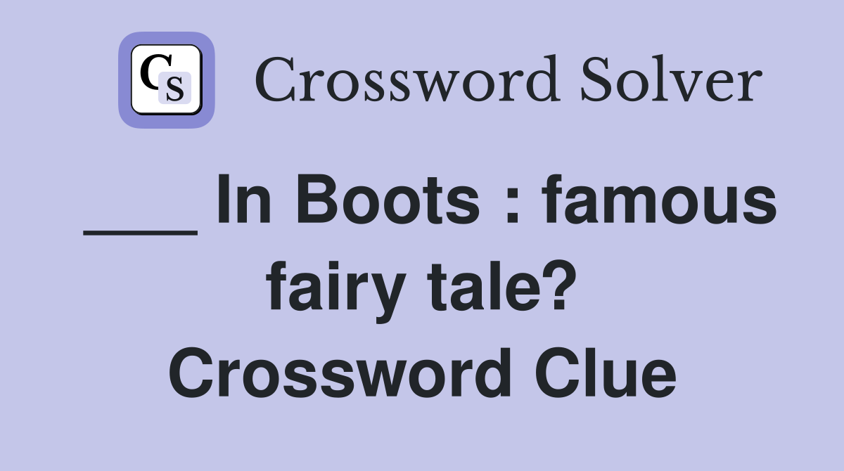In Boots : famous fairy tale? Crossword Clue Answers Crossword Solver
