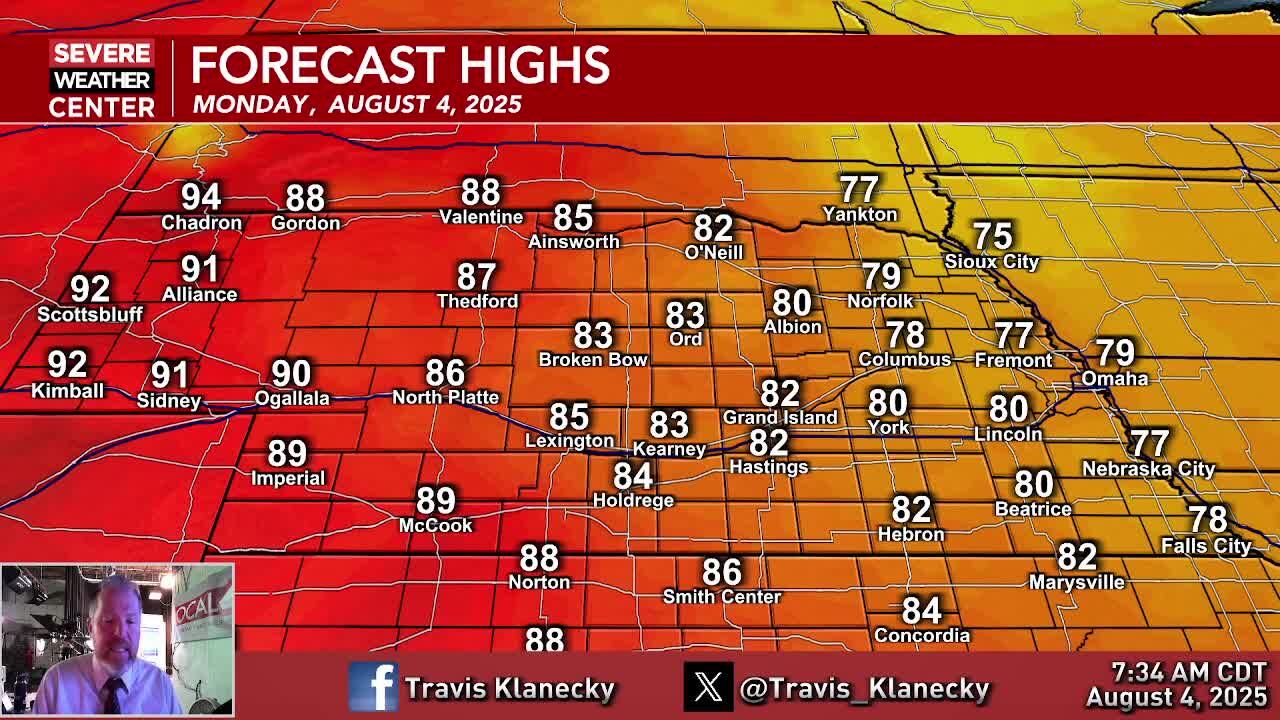 Temperatures gradually warming through the week as heat and humidity