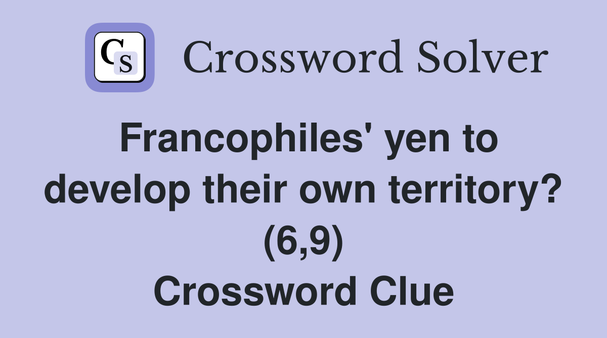 Francophiles #39 yen to develop their own territory? (6 9) Crossword