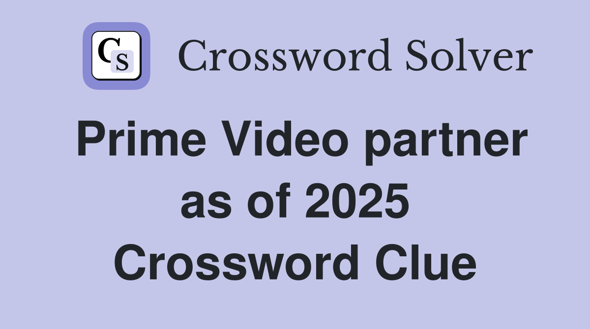 Prime Video partner as of 2025 Crossword Clue Answers Crossword Solver