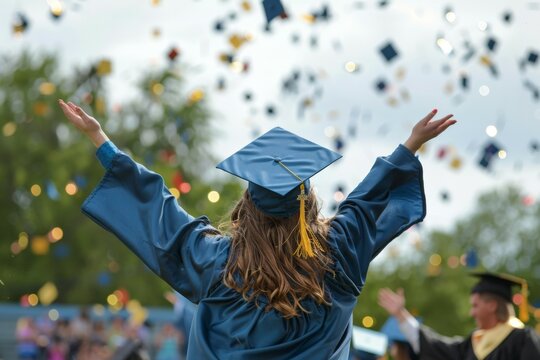 Premium Photo Graduate Celebrates Achievement Under Clear Blue Sky