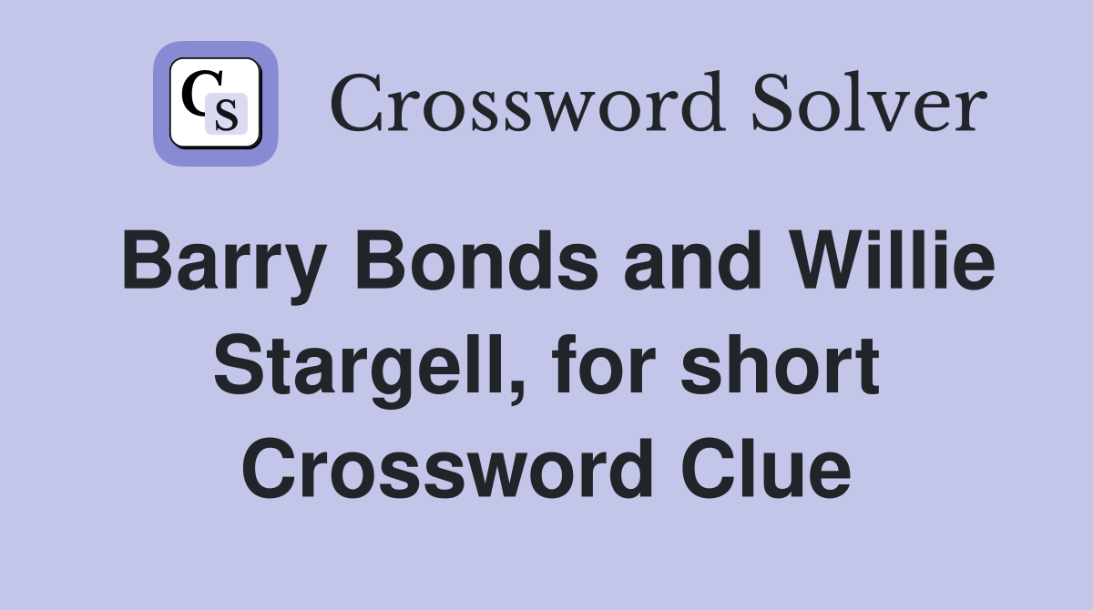 Barry Bonds and Willie Stargell for short Crossword Clue Answers