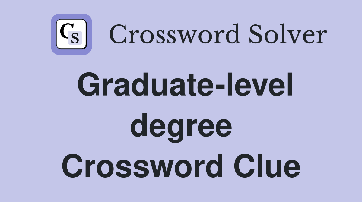 Graduate level degree Crossword Clue Answers Crossword Solver