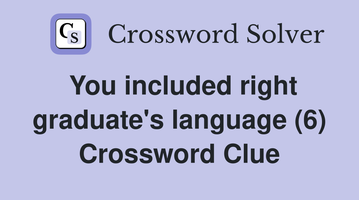 You included right graduate #39 s language (6) Crossword Clue Answers