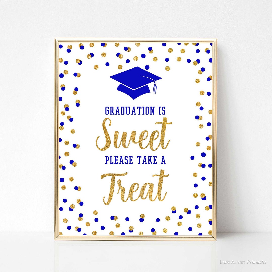 Graduation is Sweet Please Take a Treat Sign Royal Blue Gold Glitter