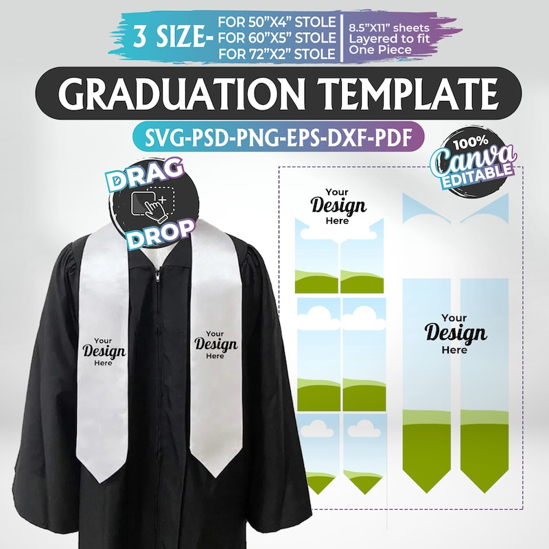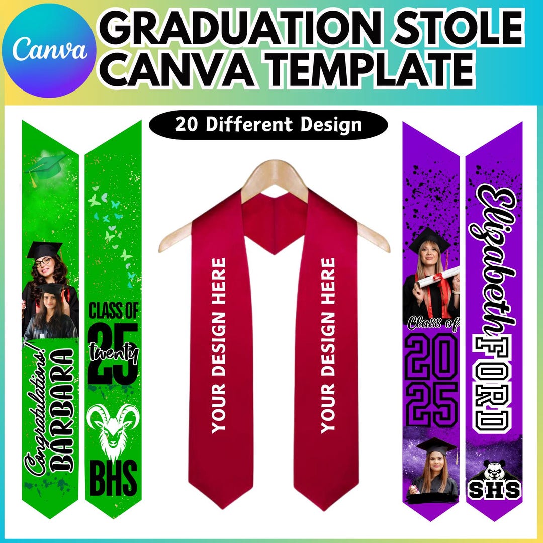 Graduation Stole Canva Template Bundle 4 Sizes Stole Template