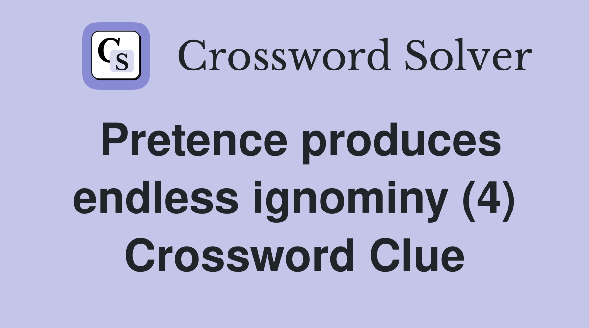 Pretence produces endless ignominy (4) Crossword Clue Answers
