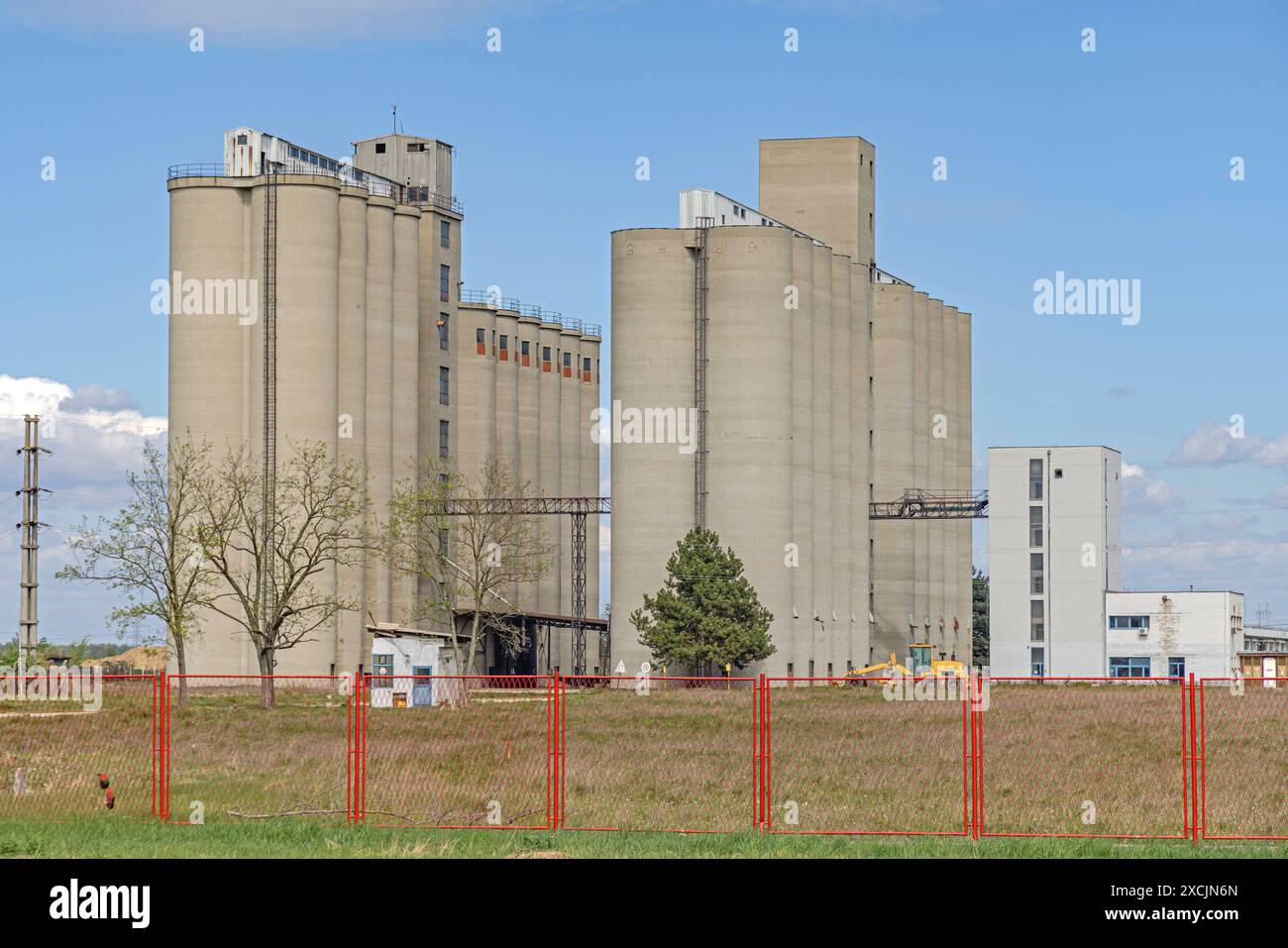 Obrenovac Serbia April 04 2024: Tall Concrete Silo Grain Storage
