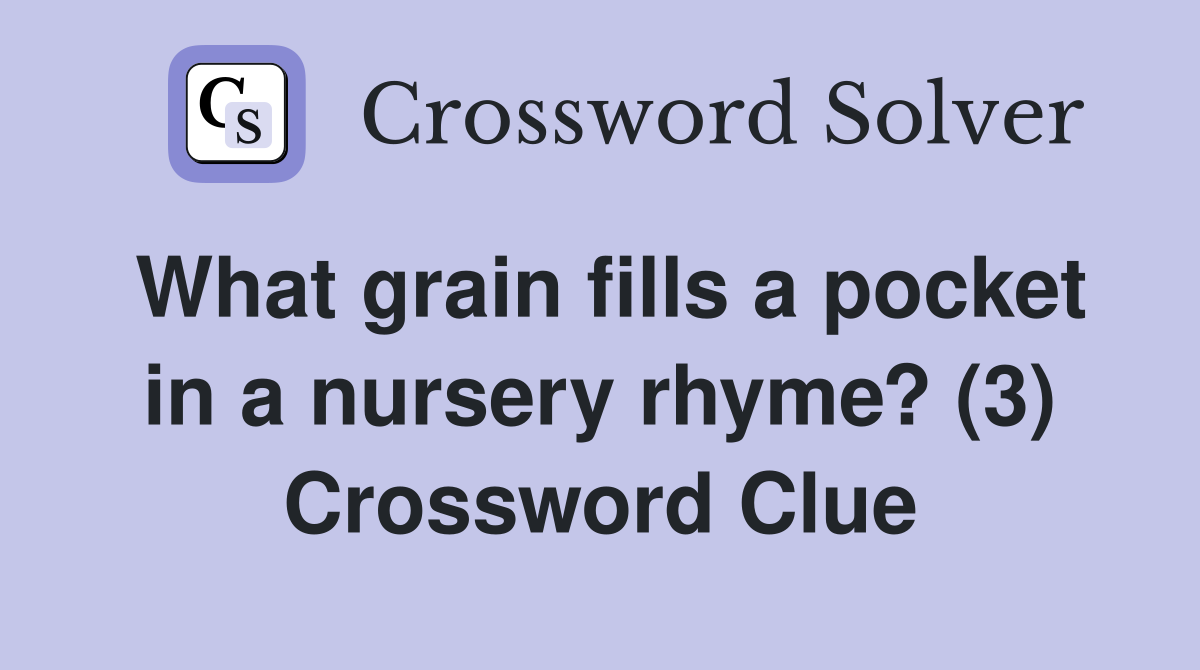 What grain fills a pocket in a nursery rhyme? (3) Crossword Clue