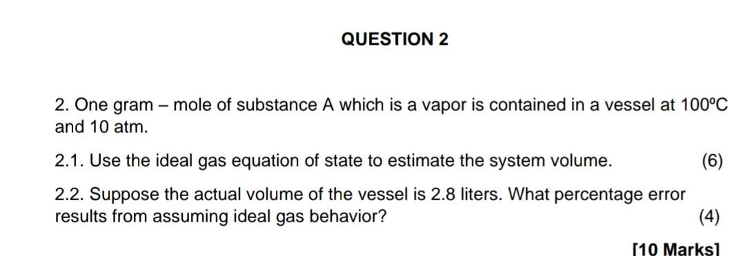 Solved 2 One gram mole of substance A which is a vapor is Chegg com