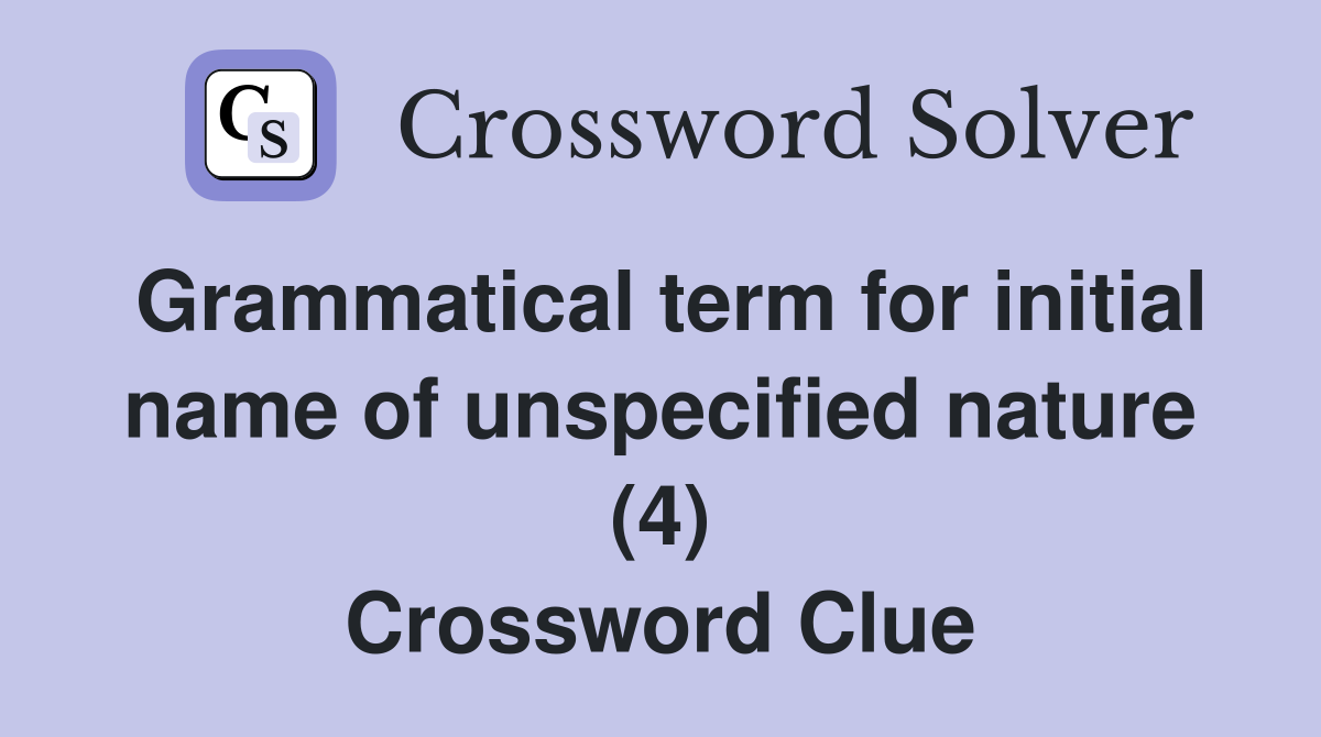 Grammatical term for initial name of unspecified nature (4) Crossword