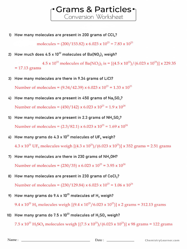 Here are some of the images for Grams And Particles Conversion Worksheet that we found in our website database.