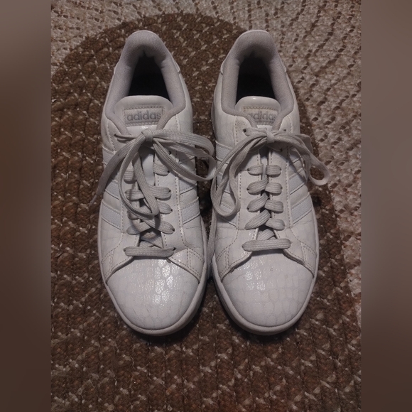 Adidas Grand Court White Lace up Sneakers snake print Tennis Shoe Sz 8