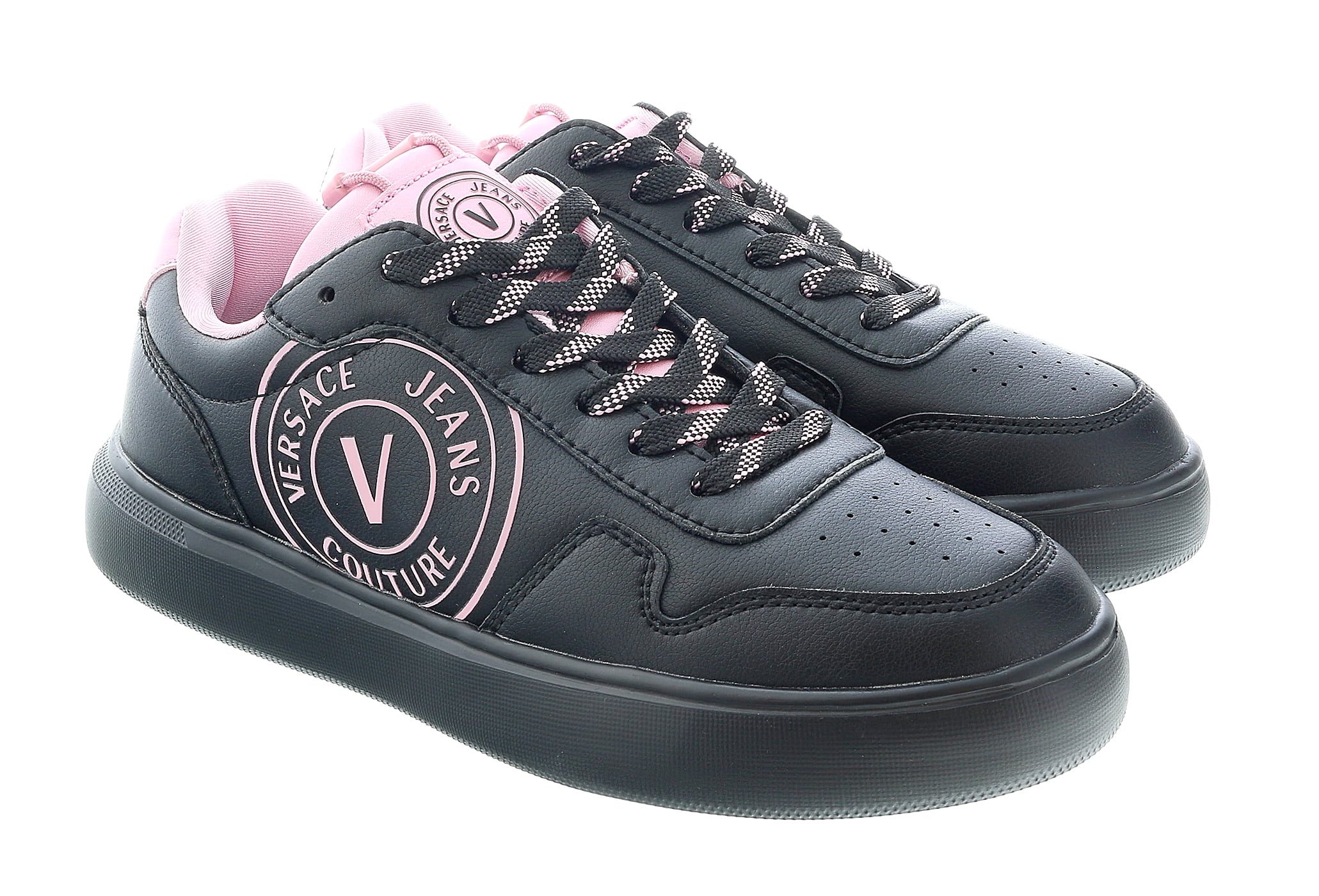 Versace Jeans Couture Black/Pink V Logo Court Lace Up Sneakers 9 for