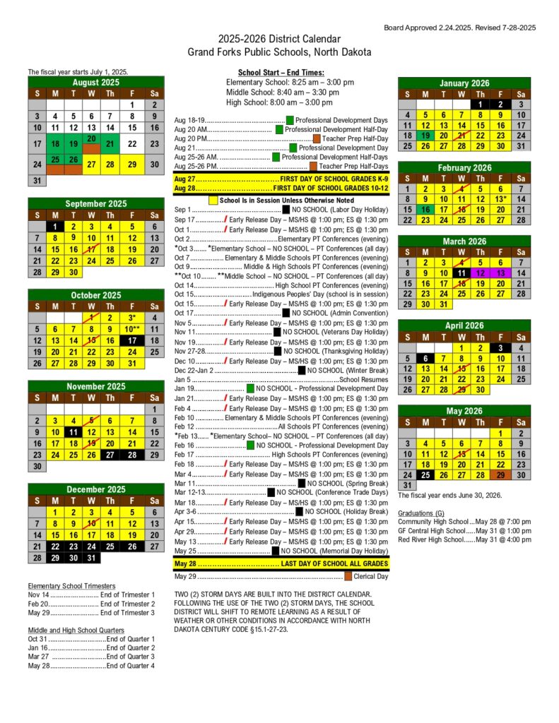 Grand Forks Public Schools ND Calendar 25 26 Revised pdf EduCounty