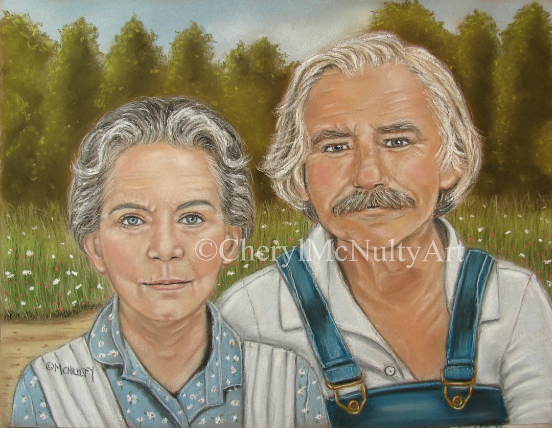 Grandma and Grandpa Walton Portrait Print of Pastel Painting Will Geer