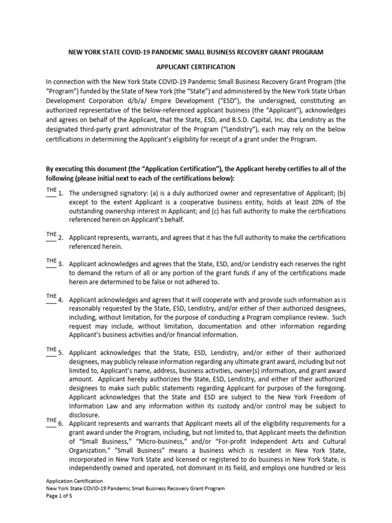 NYS COVID 19 Pandemic Small Business Recovery Grant Program