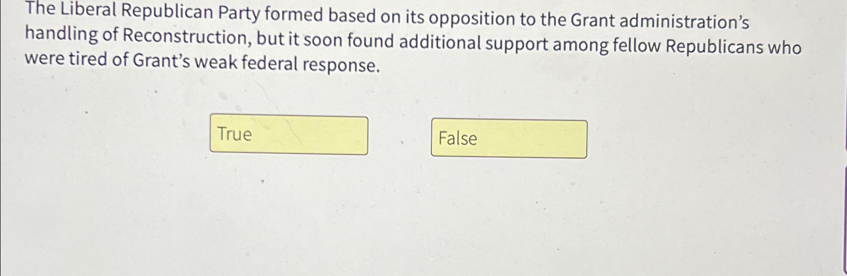 Solved The Liberal Republican Party formed based on its Chegg com