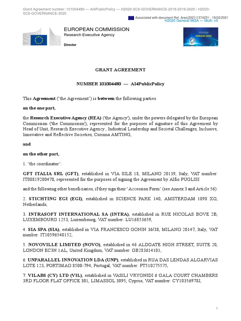 Grant Agreement 101004480 AI4PublicPolicy PDF Cost Regulatory