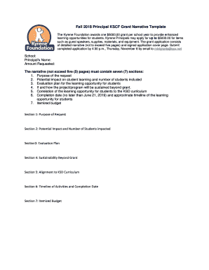 Fillable Online Fall 2018 Principal KSCF Grant Narrative Template Fax