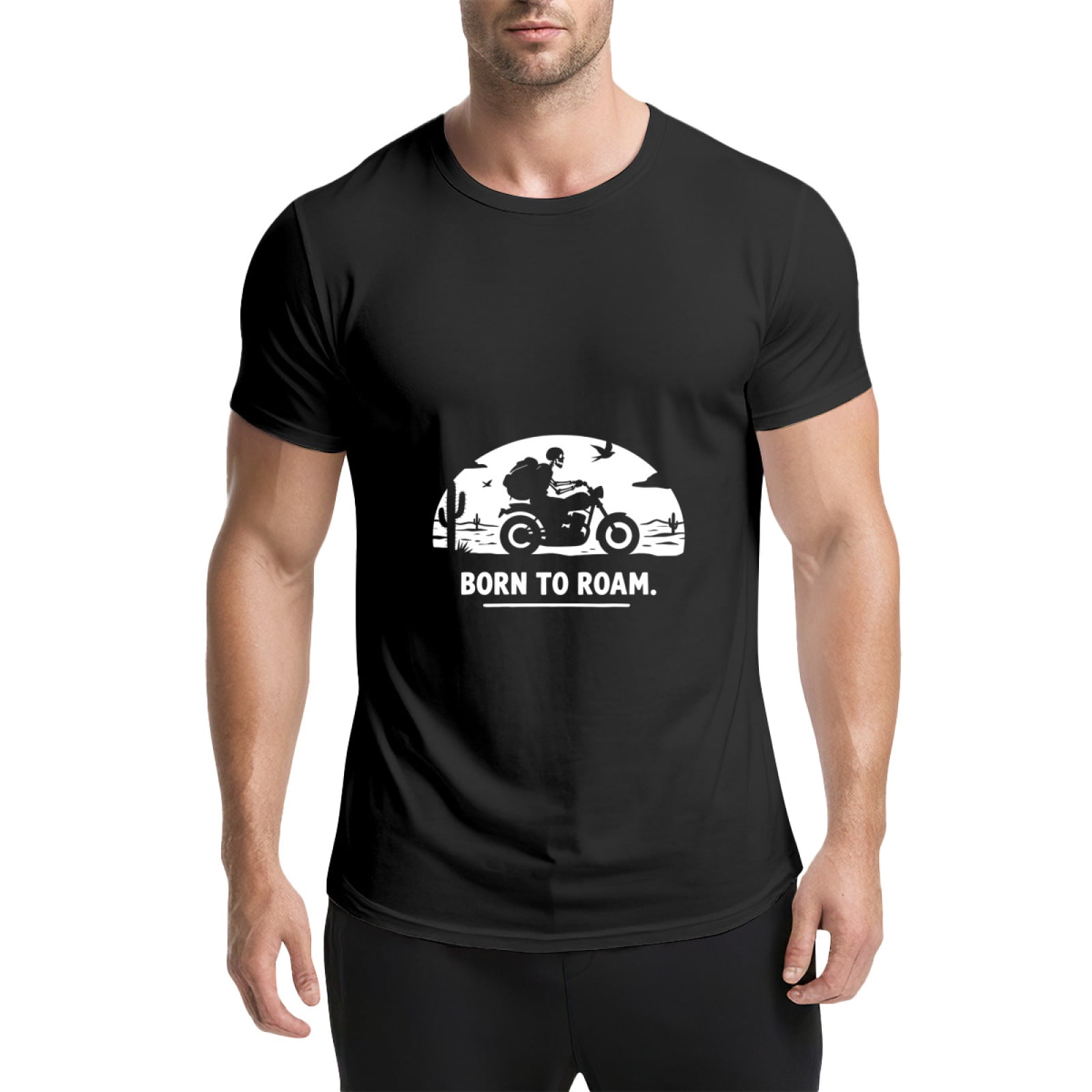 Black T Shirts for Men Skeleton Motorcycle Desert Born To Roam