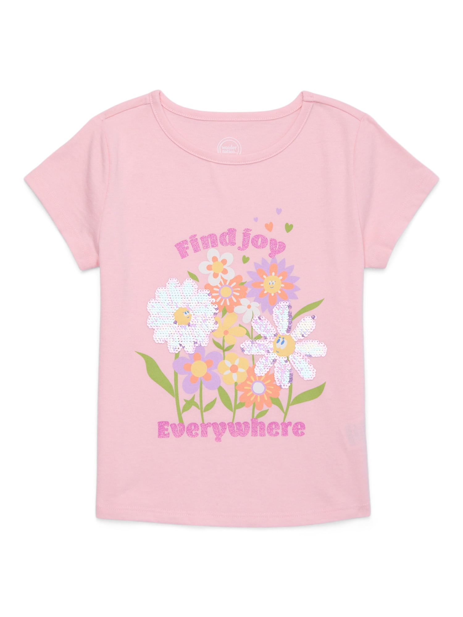 Wonder Nation Girls Embellished Graphic Tee Short Sleeves Sizes 4 18