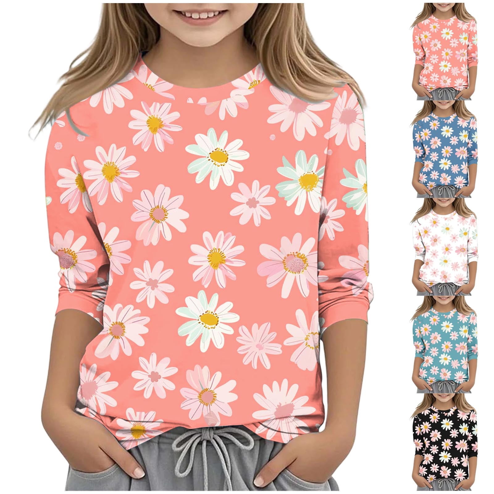 Afuyipoi Girls 3/4 Sleeve Tops Cute Graphic Print T shirts Casual
