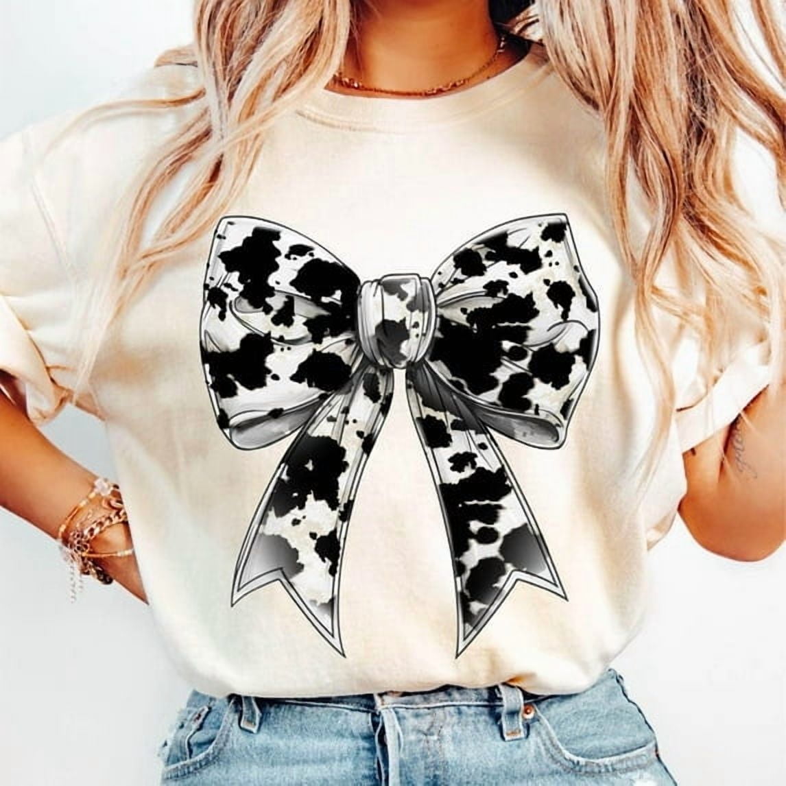 Cow Print Coquette T Shirt Western Cowgirl Graphic Tee Retro Ranch