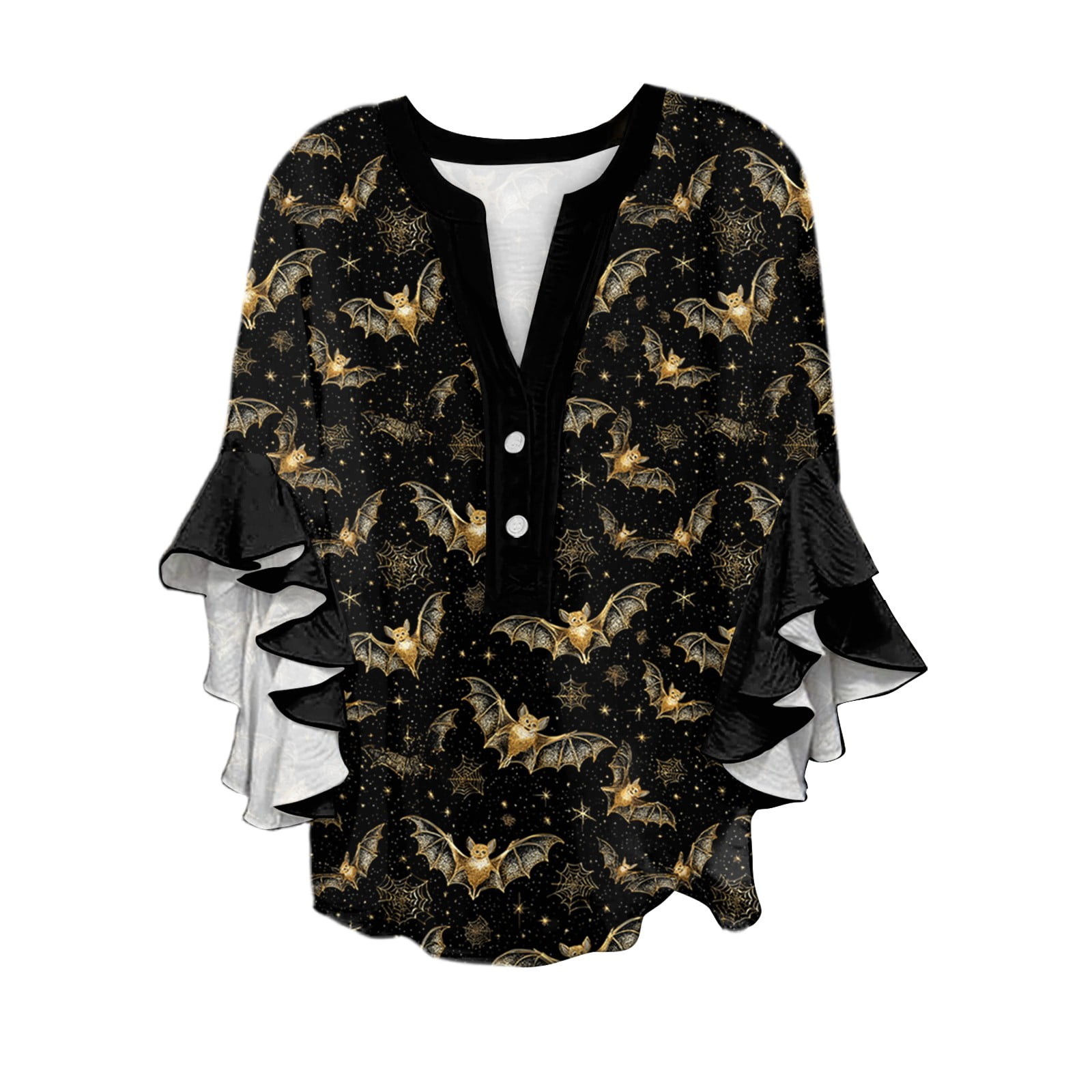 Cute Halloween Tops For Women 3/4 Sleeve V Neck Button Down Shirts