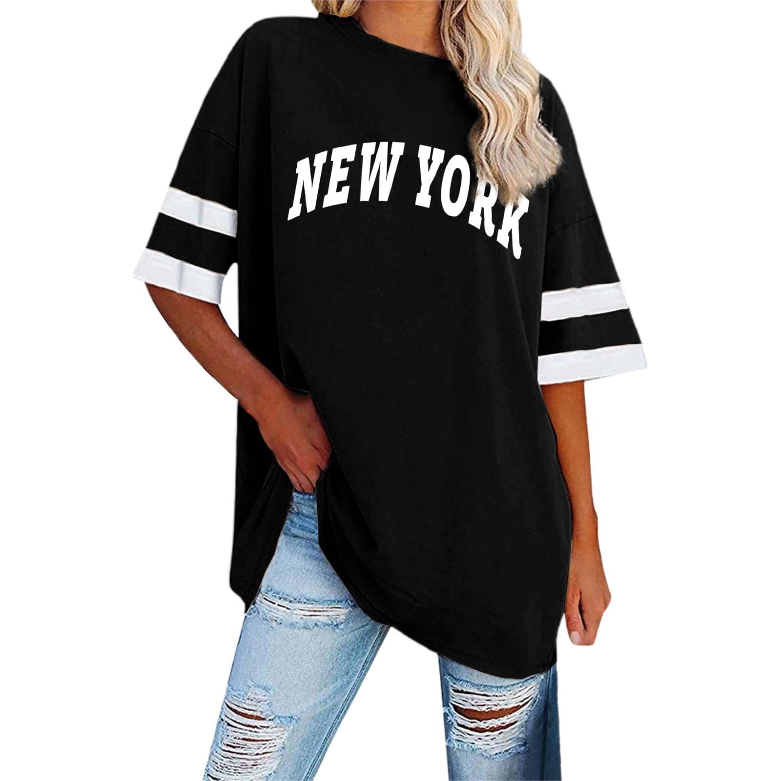 Fshinging Women T Shirts Tops Half Sleeve Summer Letter Print Loose