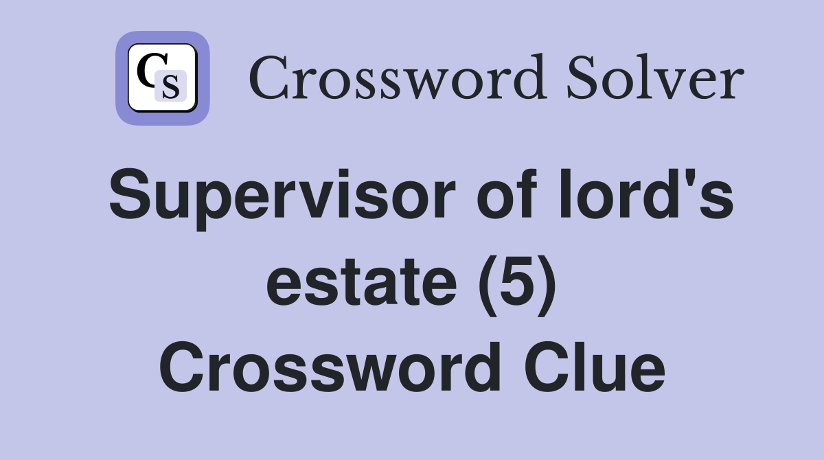 Supervisor of lord #39 s estate (5) Crossword Clue Answers Crossword Solver