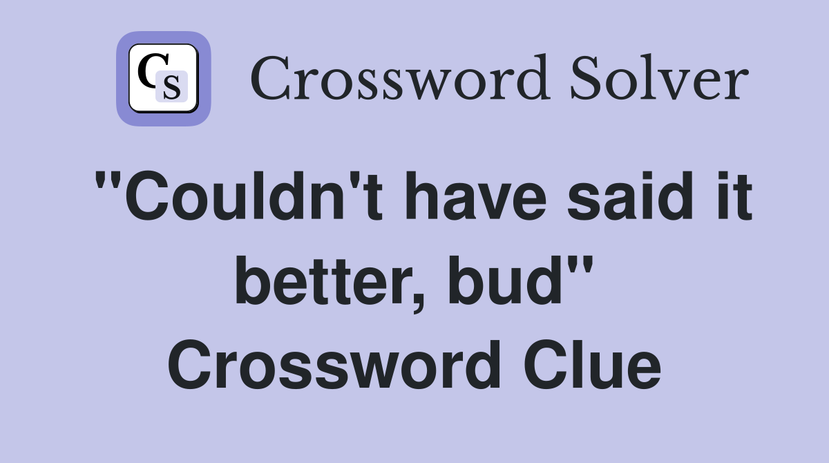 quot Couldn #39 t have said it better bud quot Crossword Clue Answers