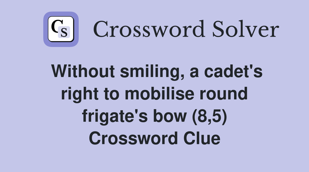 Without smiling a cadet #39 s right to mobilise round frigate #39 s bow (8 5
