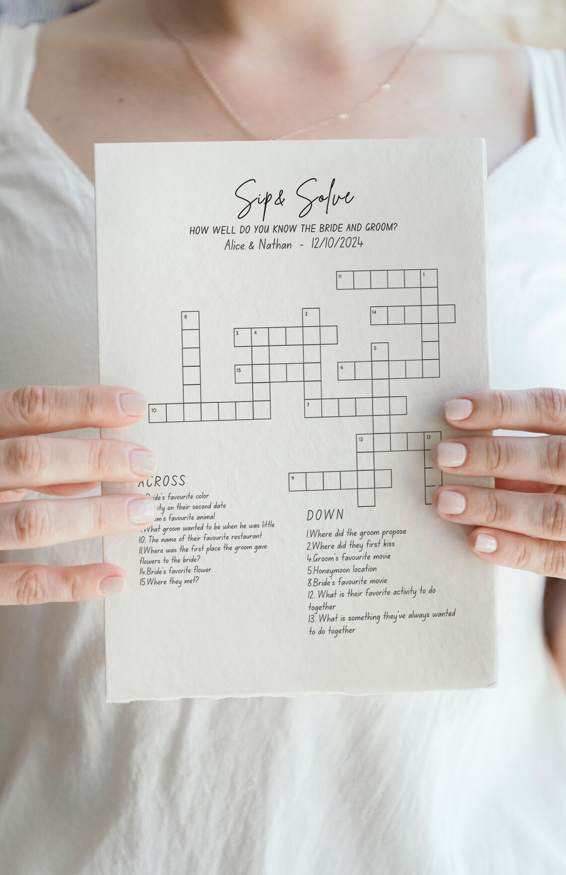 Sip and Solve Wedding Crossword Puzzle Bridal Shower Crossword