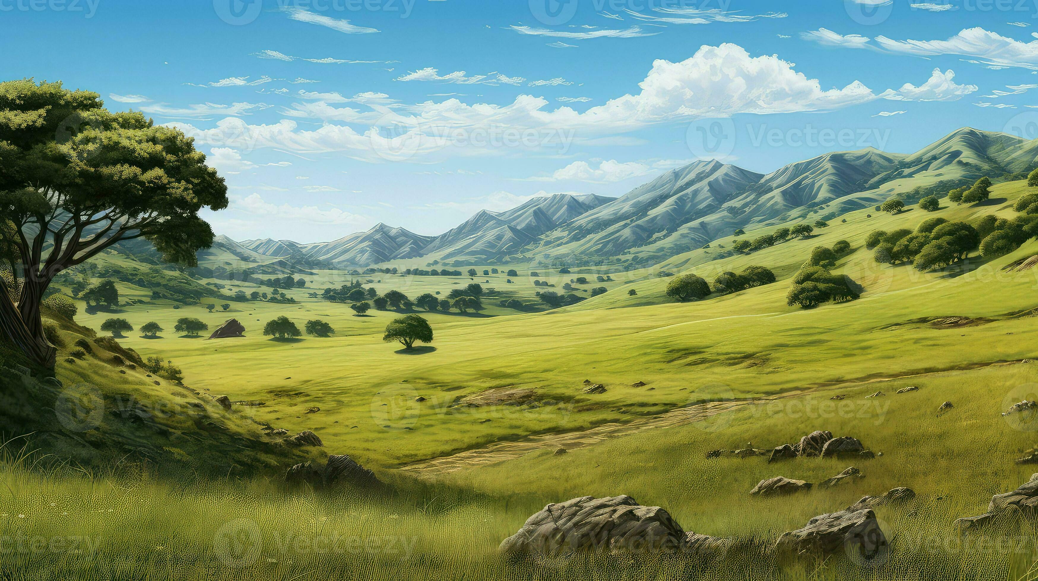 travel foothill grasslands grassy ai generated 29110408 Stock Photo at