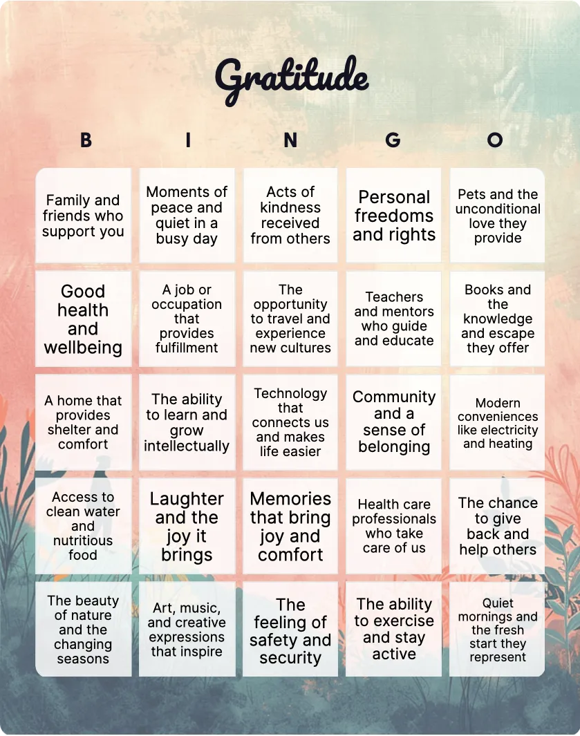 Gratitude Bingo Card