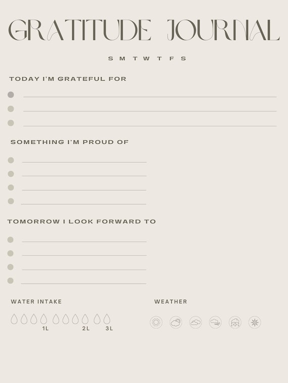 Gratitude Journal Printable Instant Download Minimal Etsy