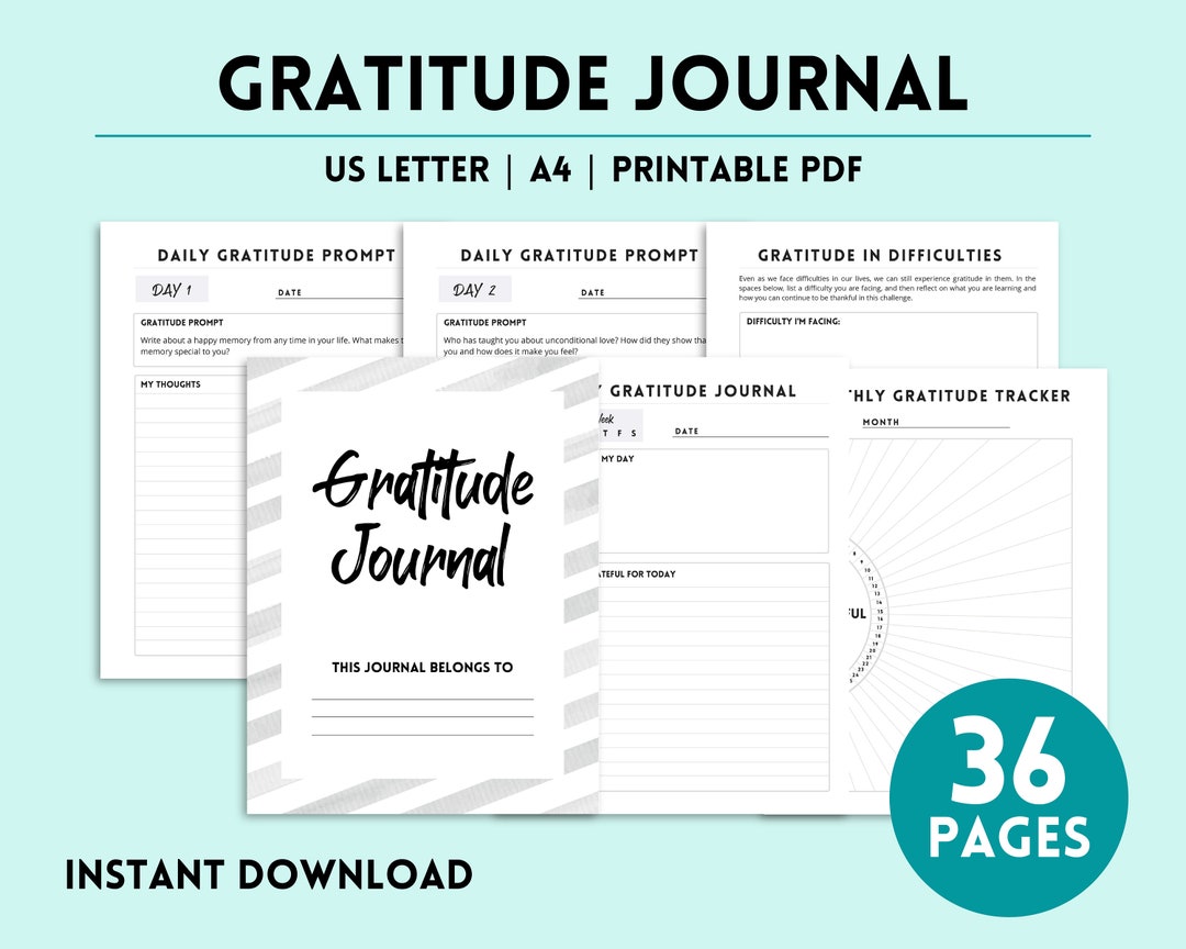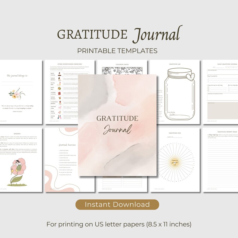Minimalistic Gratitude Journal Bundle Printable Journal US Letter A4
