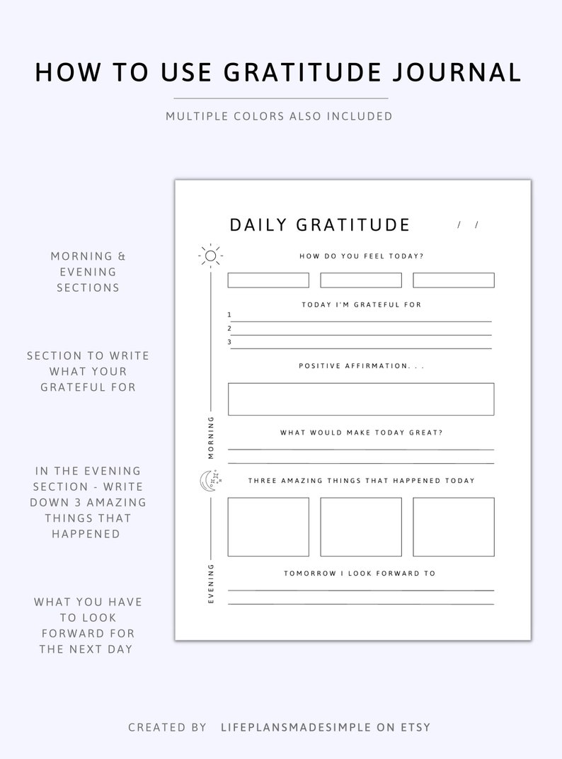 Daily Gratitude Journal Printable Instant Download Gratitude Journal