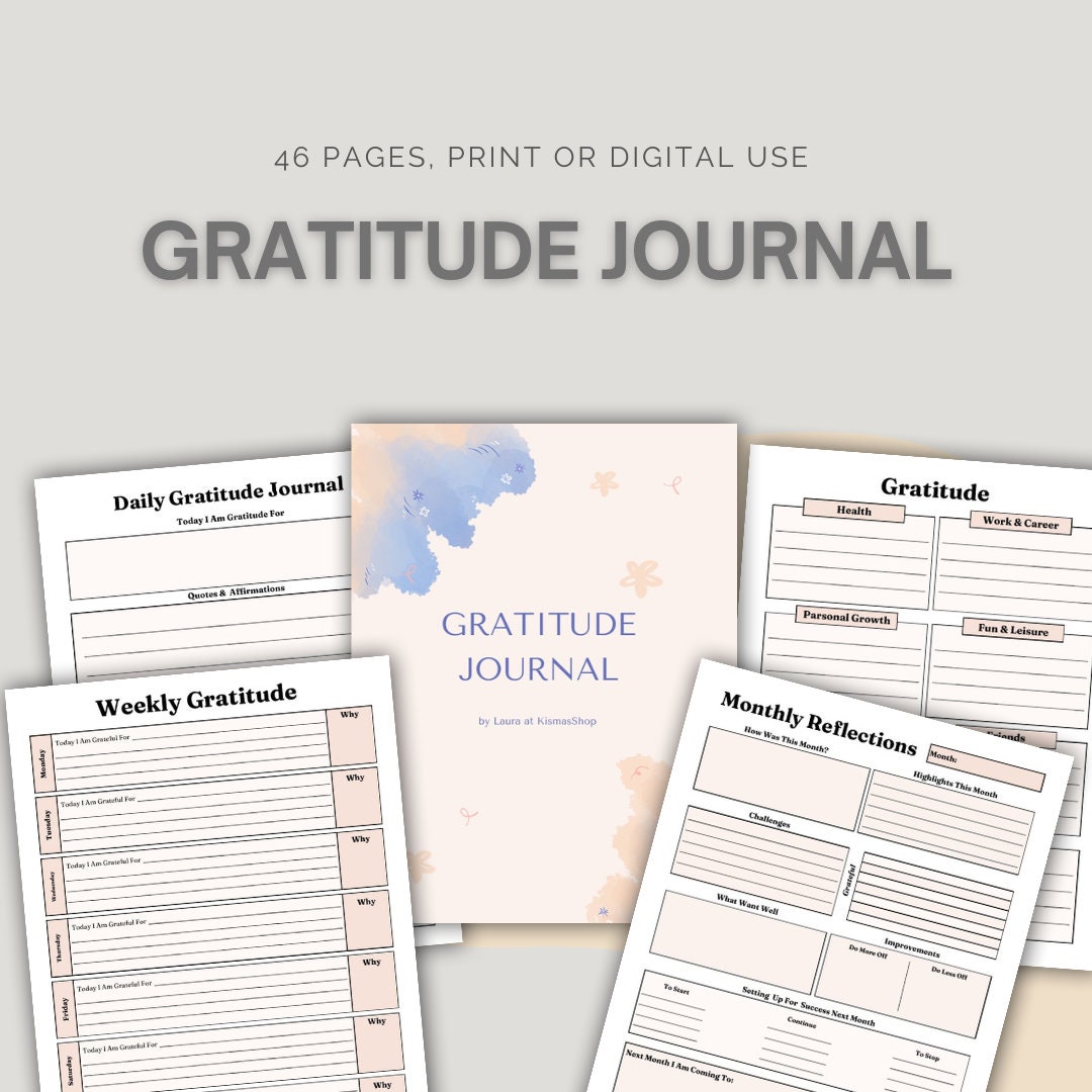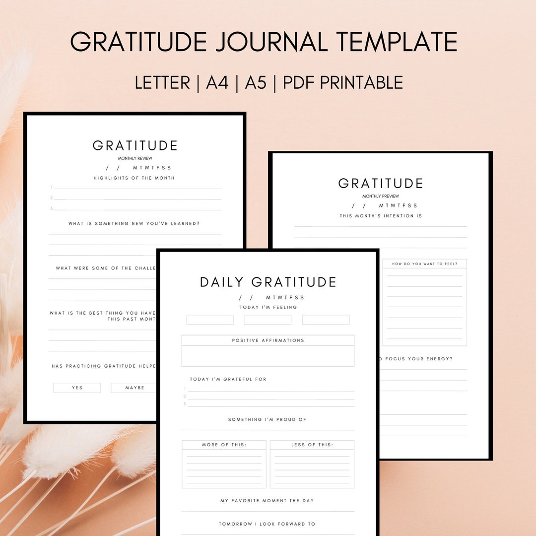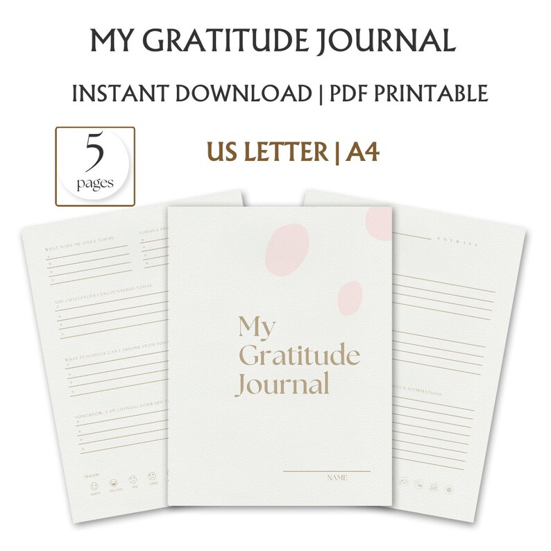 Digital Gratitude Journal Printable Fillable PDF A4 A5 Letter