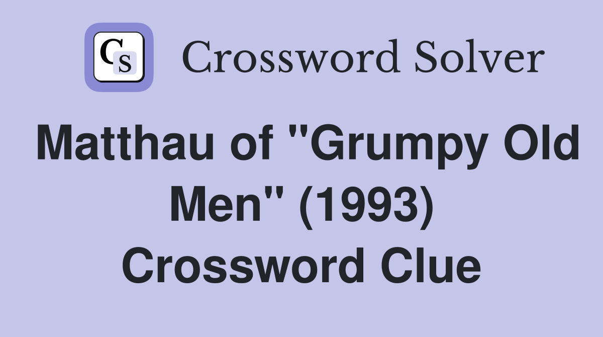 Matthau of quot Grumpy Old Men quot (1993) Crossword Clue Answers Crossword