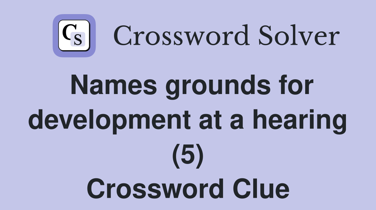 Names grounds for development at a hearing (5) Crossword Clue Answers