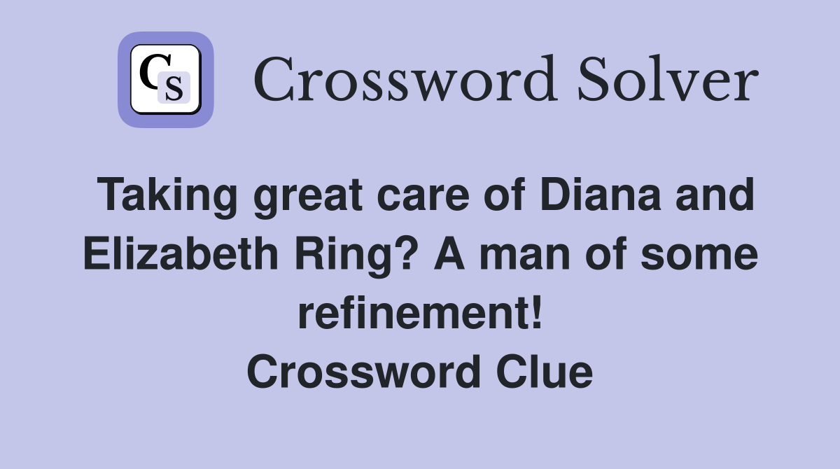 Taking great care of Diana and Elizabeth Ring? A man of some refinement